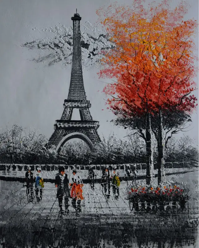 Pintados à mão paleta knifetextured eneuropean paisagem pintura a óleo branco preto paris rua pintura retrato da parede para sala de estar|picture for living room|wall picturesparis street painting - AliExpress