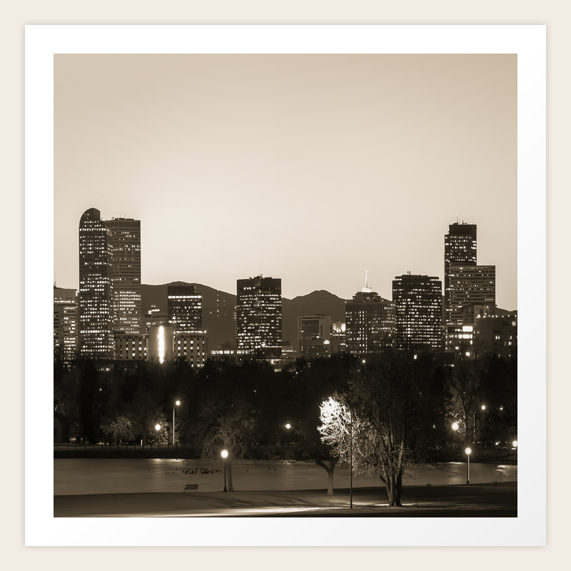 Denver Skyline And Rocky Mountains Square Art Sepia Art Print By Gregory Ballos Fine Art Photography Society6